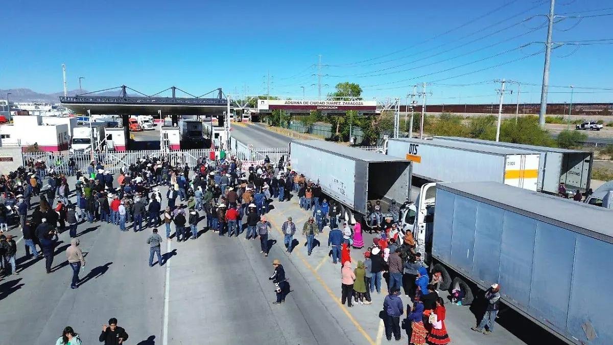Paralelamente, en Ciudad Juárez, más de 600 productores bloquearon los accesos de la aduana fronteriza, así como las importaciones y exportaciones de mercancías en los cruces internacionales de Zaragoza y Jerónimo–Santa Teresa. El dirigente del Frente Nacional para el Desarrollo del Campo Mexicano, Eraclio Yako Rodríguez, señaló que permanecerían de manera indefinida hasta que el Gobierno Federal acceda a entablar un diálogo directo y ofrezca soluciones a sus inconformidades, principalmente relacionadas con las políticas aplicadas al campo y la autorización para importar granos básicos.